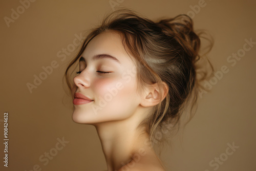 smile, woman, nose, health, cheek, hair, lip, shoulder, eyelash, ear, neck, flash, jaw, lipstick, make-up, gesture, happy, makeover, black, long, step, brown, art, layered, peach, portrait, fashion, fun, illustration, photo, beauty, face, model, skin, clean, make-up, eye, young, person, care, skincare, glamour, fresh, lip, natural, studio, closeup, spa, people