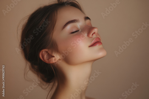 smile, woman, nose, health, cheek, hair, lip, shoulder, eyelash, ear, neck, flash, jaw, lipstick, make-up, gesture, happy, makeover, black, long, step, brown, art, layered, peach, portrait, fashion, fun, illustration, photo, beauty, face, model, skin, clean, make-up, eye, young, person, care, skincare, glamour, fresh, lip, natural, studio, closeup, spa, people