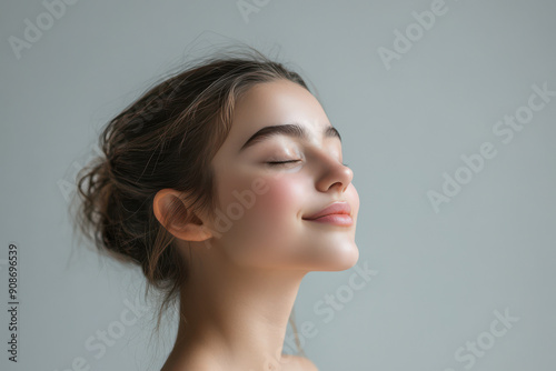 smile, woman, nose, health, cheek, hair, lip, shoulder, eyelash, ear, neck, flash, jaw, lipstick, make-up, gesture, happy, makeover, black, long, step, brown, art, layered, peach, portrait, fashion, fun, illustration, photo, beauty, face, model, skin, clean, make-up, eye, young, person, care, skincare, glamour, fresh, lip, natural, studio, closeup, spa, people