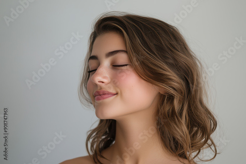 smile, woman, nose, health, cheek, hair, lip, shoulder, eyelash, ear, neck, flash, jaw, lipstick, make-up, gesture, happy, makeover, black, long, step, brown, art, layered, peach, portrait, fashion, fun, illustration, photo, beauty, face, model, skin, clean, make-up, eye, young, person, care, skincare, glamour, fresh, lip, natural, studio, closeup, spa, people