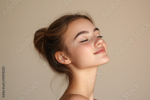 smile, woman, nose, health, cheek, hair, lip, shoulder, eyelash, ear, neck, flash, jaw, lipstick, make-up, gesture, happy, makeover, black, long, step, brown, art, layered, peach, portrait, fashion, fun, illustration, photo, beauty, face, model, skin, clean, make-up, eye, young, person, care, skincare, glamour, fresh, lip, natural, studio, closeup, spa, people