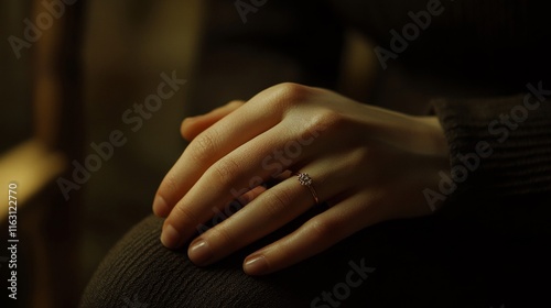 hand, ring, diamond, gold, finger, jewellery, close, up, skin, woman, female, engagement, marriage, love, promise, precious, stone, sparkle, shine, light, shadow, texture, detail, delicate, elegant, beauty, fashion, accessory, adornment, gem, carat, brilliance, graceful, soft, warmth, subtile, intimate, romantic, calm, serene, peaceful, comfort, rest