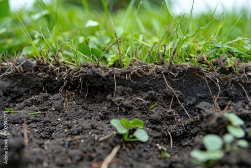 A close up of a patch of dirt with grass growing out of it