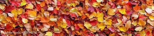 A close up of a pile of autumn leaves. The leaves are of various colors, including red, orange, and yellow. Concept of warmth and nostalgia, as the leaves are a reminder of the changing seasons