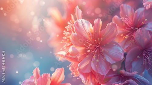 A close up of a pink flower with a blue background, Generate AI.