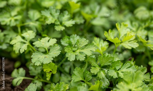 agriculture, background, cilantro, closeup, distance, farm, farming, field, foliage, food, fresh, garden, grass, green, growing, growth, health, healthy, herb, leaf, natural, nature, nourishment, organic, organic food