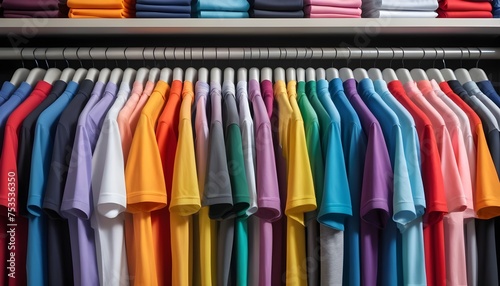 choice, horizontal, coathanger, many-coloured, copy space, colours, retail, variation, abundance, manufacturing, rack, material, hanging, closeup, t-shirt, casual clothes, in a row, textile, store, shopping, full frame, fashion, shirt, rainbow, clothing store, consumerism, clothes rack, collection, business, boutique
