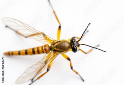 A close up of a wasp on a white background