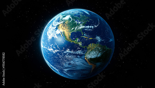 A close up of the Earth with the continents of North America and South America visible. The image has a serene and peaceful mood, as it captures the beauty and vastness of our planet