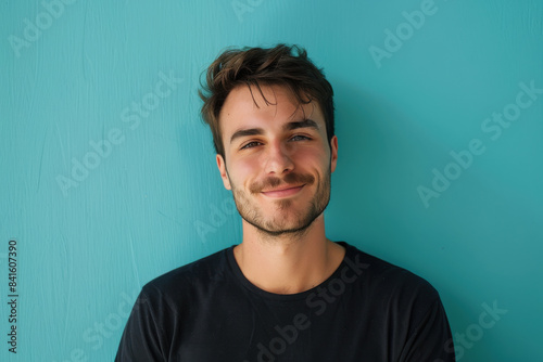 A close up portrait of a young man with a subtle smile