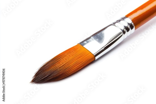 paintbrush, orange, bristle, handle, art, painting, artist, tool, supply, studio, creative, design, colours, texture, detail, close, up, macro, isolated, white, background, paint, acrylic, watercolor, oil, brush, hair, synthetic, wood, metal, ferrule, shaft, tip, point, fine, precision, stroke, artwork, canvas, illustration, drawing, craft, hobby, material, object, equipment