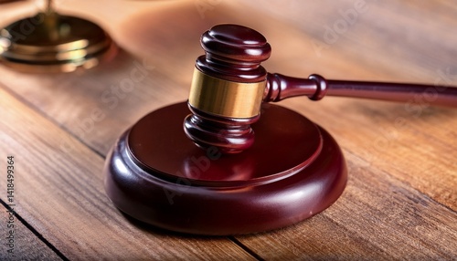 A close up view of the judge's gavel on a wooden background; high quality photo;
