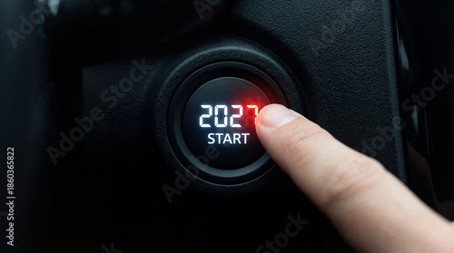 A close up view showcases a finger poised to press the illuminated start stop button in a modern vehicle s dashboard ready to ignite