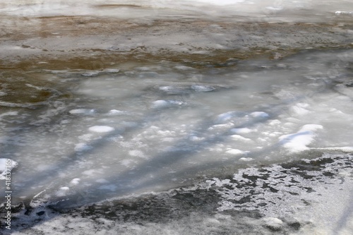 water, nature, landscape, river, winter, shore, white, snow, stream, lake, duck pond, creek, brook, surface, glacé, ice, icy, freeze, season, seasonal, season, texture, pattern, design, detail, close, closeup, closeup, cold, background, background, day, daytime, outside, outdoors