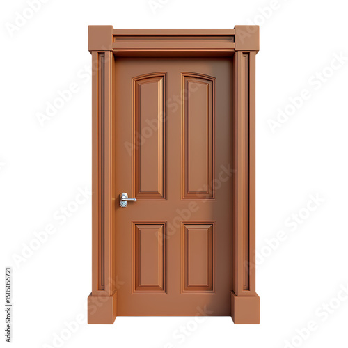 A closed wooden door with a handle isolated on transparent background