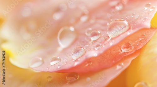 A close-up, hyper-realistic dewdrop on a pristine rose petal, symbolizing skin vitality