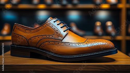 shoe, footwear, leather, brown, oxford, wingtips, man, formal, style, fashion, classic, elegant, dress, business, retail, store, display, new, product, shop, sale, quality, craftsmanship, casual attire, menswear, stylish, designer, clothing, accessory, luxury, design, comfortable, shoe, trendy, fashionable, apparel, grooming, e-business, manufacture, industry, consumer, market, brand