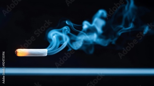A close-up of a burning cigarette with wisps of blue smoke elegantly drifting away, set against a dark background.
