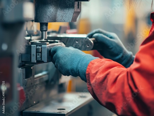 A close-up of a factory worker's hands as they carefully operate machinery, emphasizing the skill and precision required in industrial labor