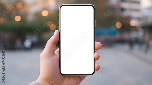 A Close-up of a Hand Holding a Smartphone with an Empty Screen Mockup