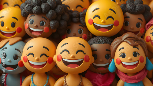 emoticon, character, crowd, group, diverse, diversity, community, people, three-dimensional, render, illustration, figure, toy, smiling, happy, joy, laughing, positive, emotion, feeling, social, media, communication, cyberspace, avatar, profile, yellow, black, african, afro, multicultural, inclusion, together, oneness, friendship, background, pattern, collection, many, massa, audience, public, team, humanity, cartoon, cute, smile, fun