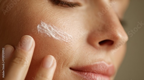 A Close-Up of a Person Applying Moisturizing Cream on Their Face, Highlighting Skincare Routine and Glowing Complexion