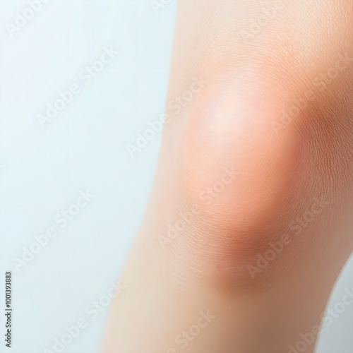 A close-up of a smooth knee showcasing a soft glow and subtle details of the skin's texture against a light background.