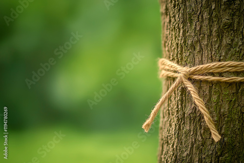 A close-up of a tree trunk tied with rope, symbolizing nature's strength and resilience.