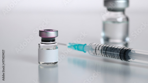 A close-up of a vaccine vial and syringe, representing healthcare and immunization efforts against diseases.