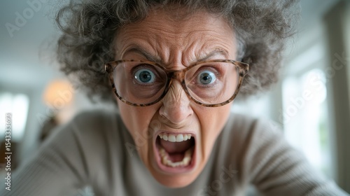 A close-up of a woman expressing intense anger, her eyes widened and mouth open in a furious scream, capturing raw human emotion and the power of feelings.