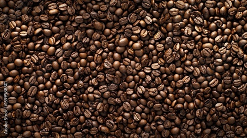 A close-up of coffee beans with a dark brown hue.