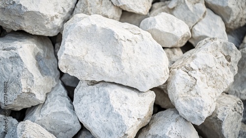 A close-up of various gray and white stones stacked together, showcasing their rugged texture and natural patterns.