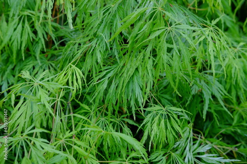 A close-up on some green leaves. Paris, France the 29th April 2021.