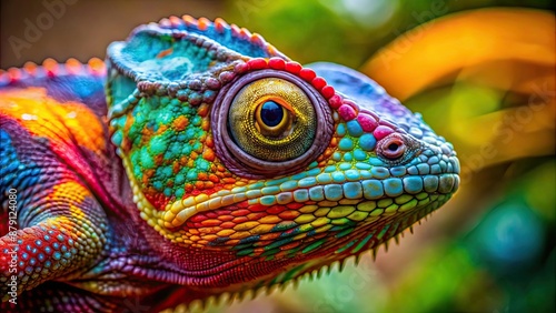 A close-up photo of a colorful chameleon blending into its surroundings, reptile, camouflage, nature, wildlife, adaptation
