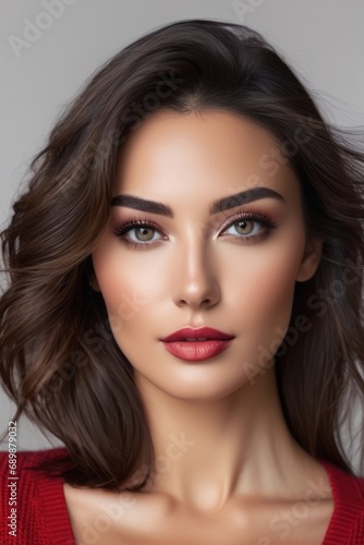 woman, beauty, hair, face, fashion, make-up, model, eye, glamour, lip, make-up, skin, coiffure, red, brunette, closeup, style, studio, care, skincare, eye, closeup, long, natural, person