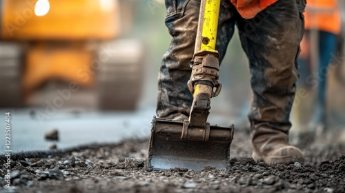 closeup, portrait, construction, men at work, operating, jackhammer, road, repair, site, scene, dynamic, rugged, style, photo, strength, precision, maintenance, high, quality, image, intensity, efficiency, pavement