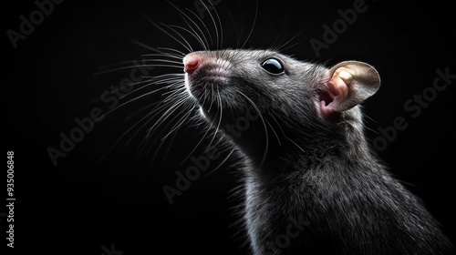 rat, rodent, animal, pet, portrait, closeup, black, white, background, fur, whisker, nose, eye, ear, tail, grey, dark, shadow, studio, photo, mammal, fauna, wildlife, domestic, cute, small, tiny, adorable, creature, felino, night, indoor, sharpened, sharp, detail, texture, contrast, light, silhouette