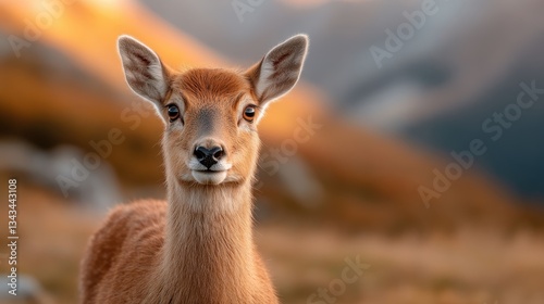 A close-up portrait of a young deer in a serene outdoor setting, showcasing the beauty of wildlife and the peacefulness of nature's landscapes.