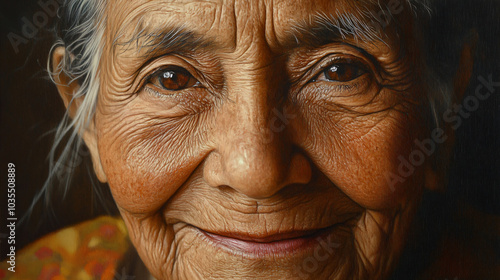 portrait, closeup, smiling, wrinkle, life, life events, human, expression, face, personality, individuality, photo, artistic, candid, depth, sharpened, natural, real, detailed, storytelling, wisdom, age, character, warmth, portraiture, connection, beauty, timeless, elegance, authentic, expressive, graceful, mood, emotion