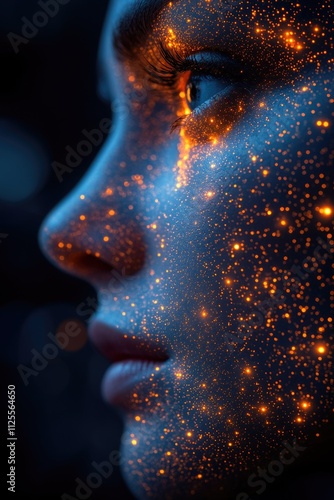 glistering, make-up, close, up, face, paint, party, decoration, festive, celebration, new, eve, holiday, season, glamourous, sparkle, shine, facial, body, art