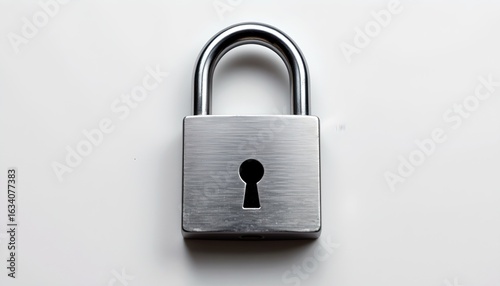 A close-up shot of a shiny, silver padlock isolated