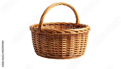 basket, wicker, woven, handle, rounded, brown, natural, texture, detail, empty, container, storage, object, design, hand-made, picnic, shopping, rustic, farm, outdoors, vintage, classic, traditional, basketry, craftsmanship, artisanal, sturdy, light, open, shadow, isolated, transparent, gardening, gathering, harvest, display, element, composition, presentation, style, shape, pattern, structure, wood, household, utility