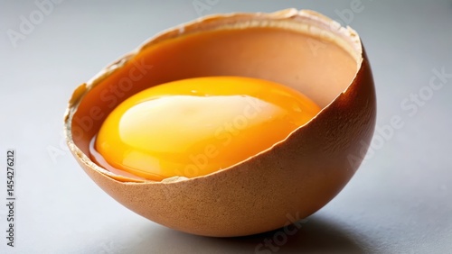 A close-up shot of an open egg with a visible yolk, showcasing its creamy texture and golden color , oval shape, egg yolk