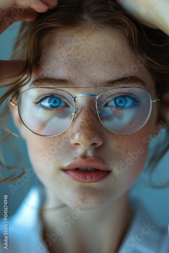 A close-up shot of someone wearing glasses, great for portrait or profile use