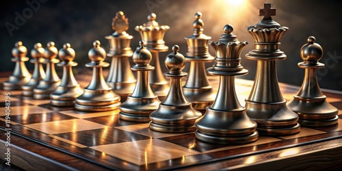 A close-up view of a chessboard with golden pieces, capturing the intensity of strategy and the anticipation of the next move.