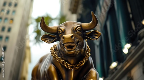 bull, sculpture, city, art, finance, street, statue, metal, chain, wealth, power, decor, modern, landmark, tour tourism, beauty, showcase, spirit, culture, detail, success, icon, talent, glimmer, design