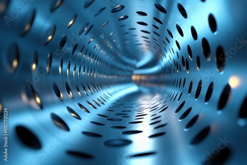 metallic, tunnel, blue, intricate, perforated, design, light, texture, pattern, geometry, industrial, structure, depth, shiny, surface, circle, cylinder, abstract, technology, perspective, curved, engineering, detail, composition, modern, smooth, visual, art, symmetry, line, shape, minimalism, circular, material, craftsmanship, innovative, creative, captivating, exploration, aesthetic, effect, finish, contemporary, optical