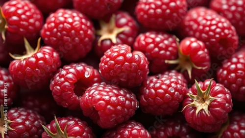 A Close-Up View of a Pile of Ripe Raspberries, Featuring Their Deep Red Color and Detailed Texture