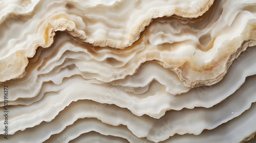 A close-up view of a textured surface, possibly a rock or mineral formation. The surface has a layered, wavy pattern with varying shades of beige and light brown.