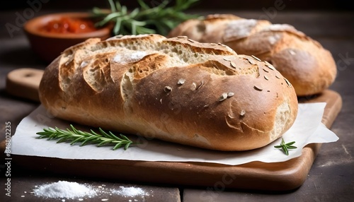 food, ciabatta, bread, rustic, meal, board, italian, fresh, traditional, condiment, snack, bakery, cookery, healthy, breakfast, crust, lunch, background, baked, cooking, slice, receipe, cereal, epicure, grunge, loaf, sliced, bake, cutting, aromatic, spicey, rosemary, paper, salt, top, view, copy space, text, space